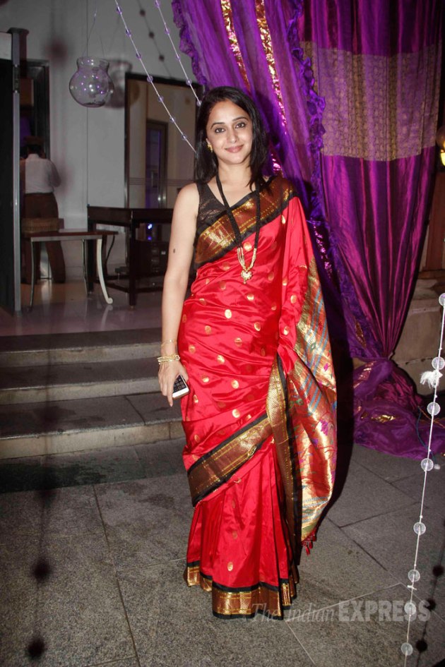 Sumitra of TV show 'Balika Vadhu', Smita Bansal arrived with husband, director Anshul Mohta. (Source: Varinder Chawla)