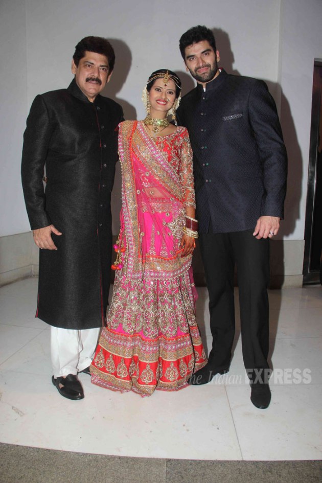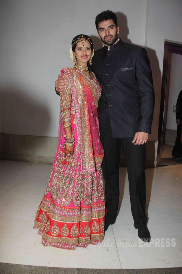 TV's hearthrob Gurmeet Choudhary was handsome in a suit while his wife and actress Debbina Bonnerjee chose a white lehenga for the evening. (Source: Varinder Chawla)