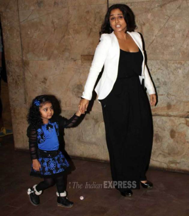 Vidya Balan, with her sister's daughter, makes her way into the theatre. (Photo: Varinder Chawla)
