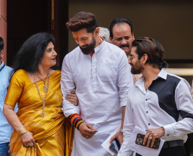 The opposition has vowed to protect the Constitution and not allow any attack on it by the Modi government. In the picture, Union Minister and LJP (Ram Vilas) MP Chirag Paswan with mother Reena Paswan and others at the Parliament House complex on the first day of the first session of 18th Lok Sabha, in New Delhi, Monday, June 24, 2024. (PTI)