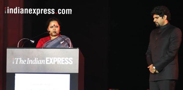 Maharashtra CM''s wife and playback singer Amruta Fadnavis performs at the Indian Express event, Mumbai, on Sunday (Express Photo by Prashant Nadkar)