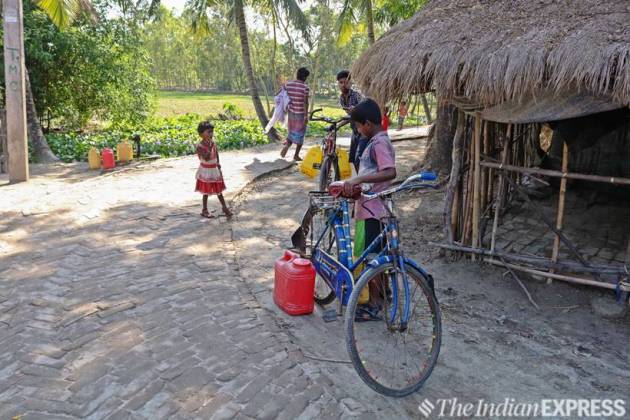 Surrounded by salty waters on all sides, people living in the inhabited islands of the world's largest mangrove forest, getting access to clean drinking water is extremely exhausting. (Express photo: Shashi Ghosh)
