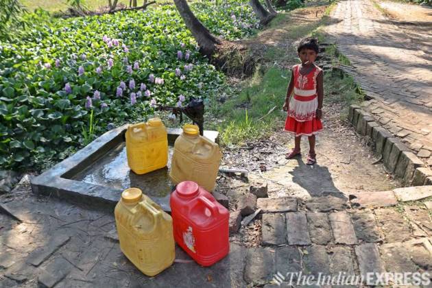 From small children to women, everyone has to walk a long distance and stand in queues to collect water on a specific time, twice a day. (Express photo: Shashi Ghosh)