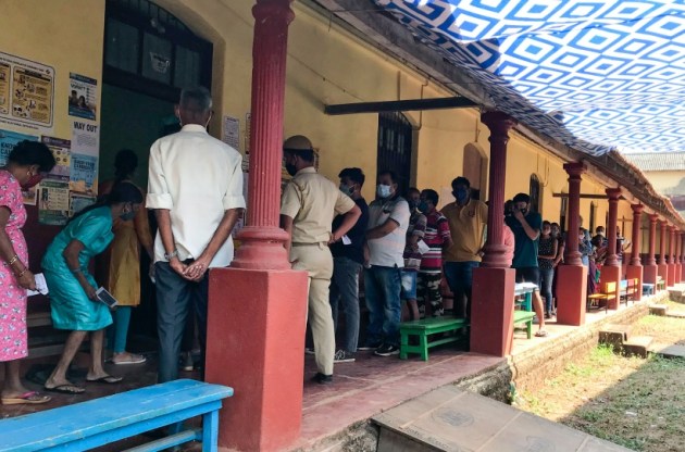 People line up to vote for the Goa state assembly elections in North Goa, Monday, (AP Photo)