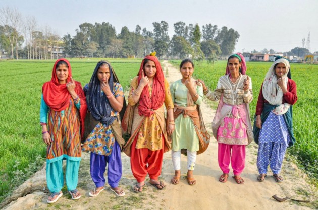 Uttar Pradesh on Monday went for its second phase of assembly elections, while Uttarakhand and Goa voted for their single-phased polls. In pic: Farmers pose in a mustard field after casting their vote, in Moradabad, Monday. (PTI Photo)