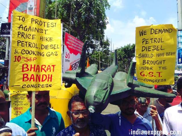 The Congress had called for a Bharat bandh on Monday to protest against rising fuel prices as well as the fall in the value of the Rupee in comparison to the US Dollar. (Express photo by Anil Sharma)