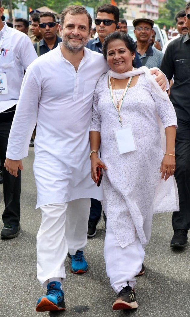 The Congress party's Bharat Jodo Yatra entered its second day in Kerala on Monday, amid an encouraging turnout of people who have been lining up the streets of the state in thousands to extend support to Rahul Gandhi. Noted athlete Padmini Thomas joined Rahul at Palayam, Kerala. (Source: INC)