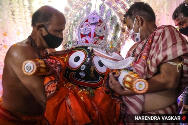 In Odisha, rituals were performed without devotees in Puri, where a two-day curfew was imposed ahead of the celebrations. (PTI)