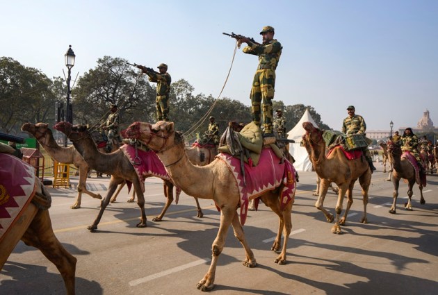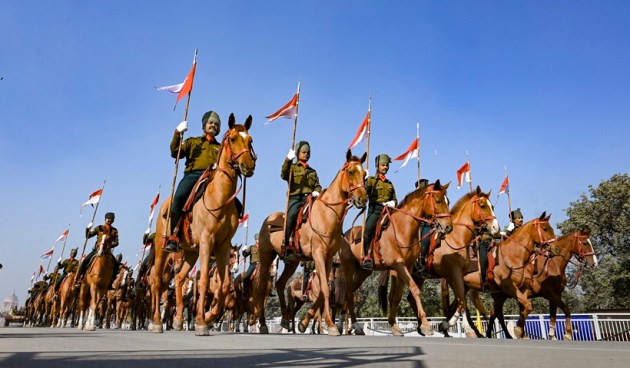 The celebrations include the traditional march past at Kartavya Path comprising a grand parade by the contingents of the Armed Forces and Paramilitary Forces; tableaux display by the States and Central Ministries/Departments; cultural performances by children; acrobatic motorcycle rides and a fly-past, besides Beating the Retreat ceremony at the Vijay Chowk and PM's NCC rally. (Express Photo by Praveen Khanna)