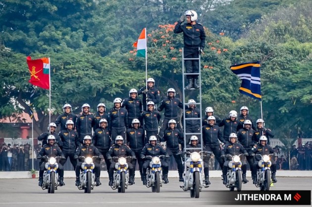 A ceremonial parade and a motorcycle stunt show were held at the Army Service Corps Centre and College in Bengaluru on the occasion of the 262nd Corps Day and 11th ASC reunion celebrations. (Express photo by Jithendra M)