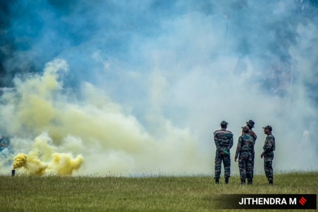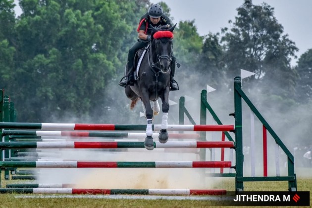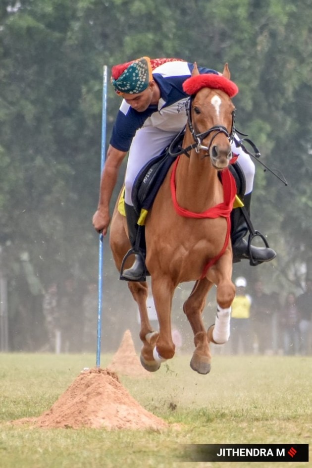 The event showcased an impressive display of equestrian sport, para-motor display and free fall by the paratroopers, the officials said. Here is a picture of an equestrian sport being played (Express photo by Jithendra M)