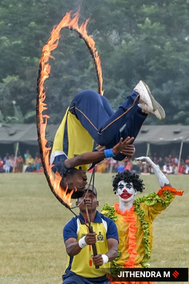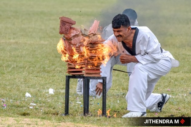 The show included ghatka by the 12th Sikh light infantry's ghatka, kallaripayattu by the 118th territorial army ghats Kalariyapattu, and taekwondo, officials added. (Express photo by Jithendra M)