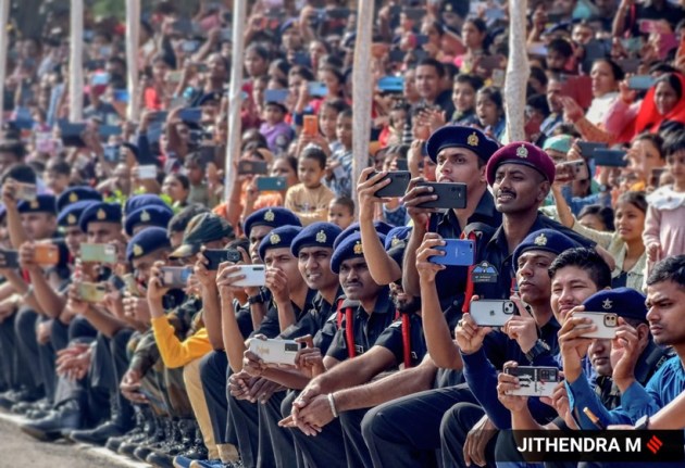The personnel and families of the armed forces, paramilitary force, police, and others and school children also attended the event. (Express photo by Jithendra M)