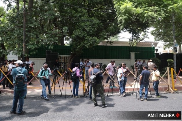 Media persons at Rajghat. Kejriwal said nothing was recovered by the Central Bureau of Investigation during its raid at Deputy CM Manish Sisodia’s residence earlier this week. (Express Photo)