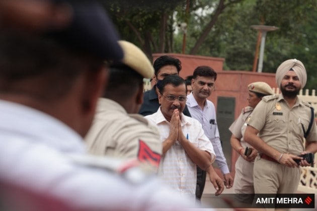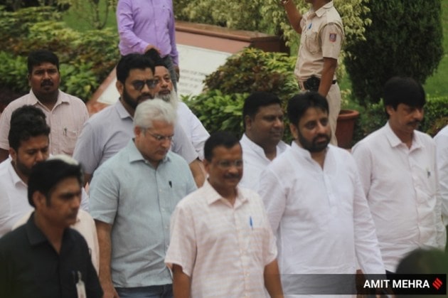 Delhi CM Arvind reaches Rajghat in New Delhi. The Aam Aadmi Party (AAP) said Thursday that 12 of its MLAs have been contacted by leaders in the BJP to break away from AAP and help topple the Delhi government. (Express Photo)