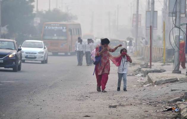 As Air Quality Index in Delhi hit 500-mark in several locations, a Supreme Court-mandated panel declared a public health emergency in Delhi. (Express Photo by Neeti Nigam.)