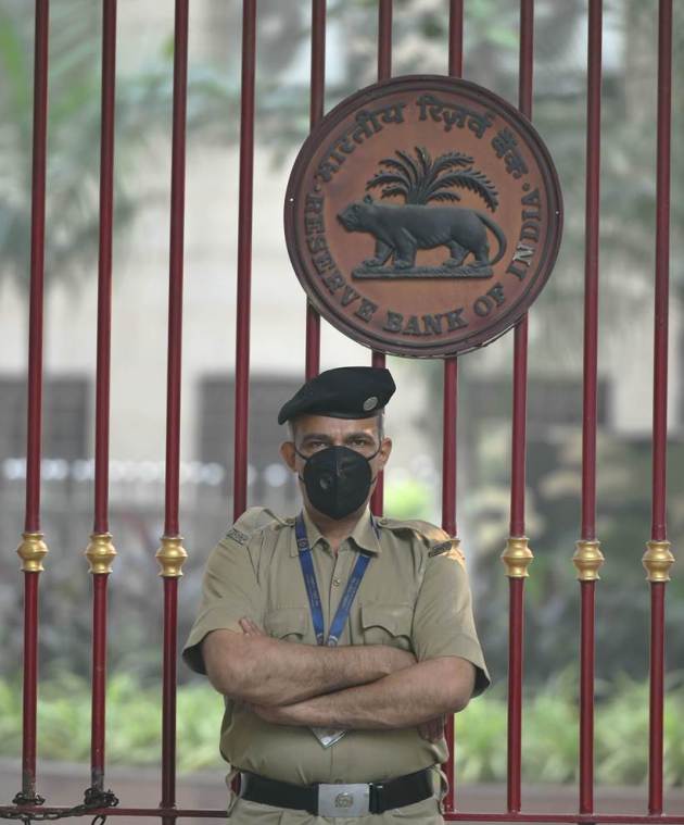 A security person, wearing anti-pollution mask, guards outside the Reserve Bank of India in New Delhi, Friday, Nov. 1, 2019, PTI Photo. Exposure to polluted air for such sustained periods of time can lead to breathing difficulties, lung damage and other adverse health effects, especially among children and the elderly.