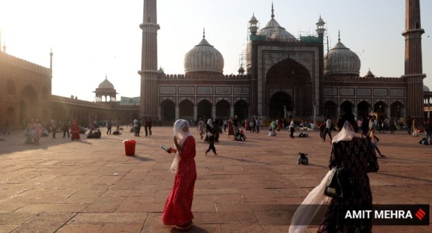 The management board of Delhi’s Jama Masjid, one of India’s biggest mosques, said Thursday it will no longer allow entry of single women who “give time to men, do wrong things” and treat the premises like a meeting point or park. (Express Photo by Amit Mehra)