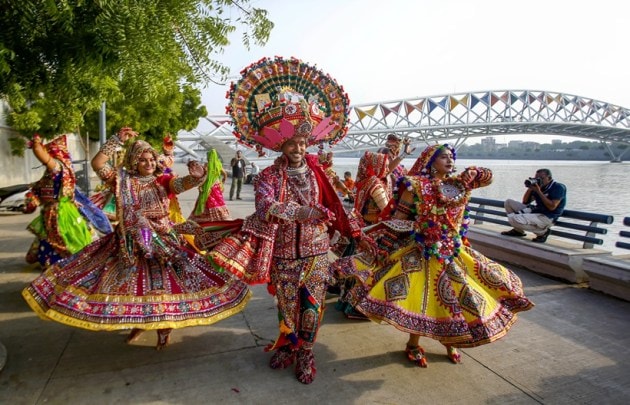 A dance group conducting full dress rehearsal of Navratri Garba at a Garden in Naranpura, Ahmedabad, on Sunday morning ahead of the festival season, Sept. 18. The Hindu festival of Navratri, or nine nights, will begin Sept. 26. (Express Photo by Nirmal Harindran)