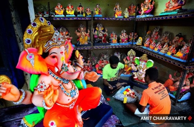 In Pune, several mandals have installed idols in temples or in simple small eco-friendly pandals.