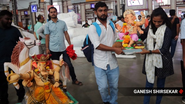 Commuters were seen transporting Ganesha idols from Bombay central station in Mumbai via trains on Sunday. (Express Photo by Ganesh Shirsekar)