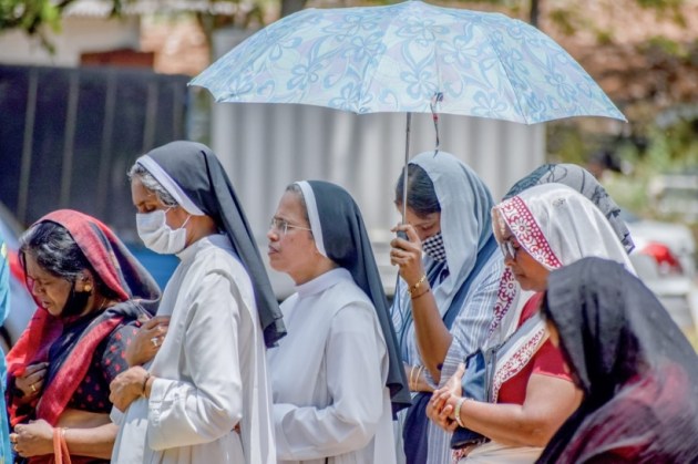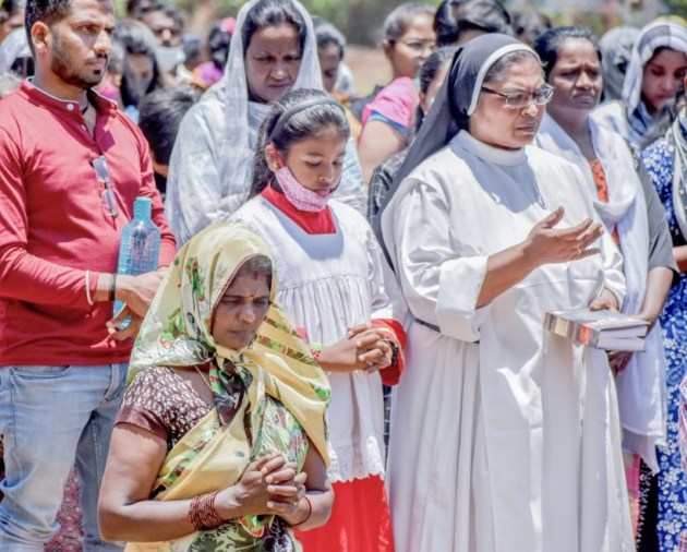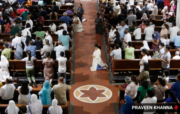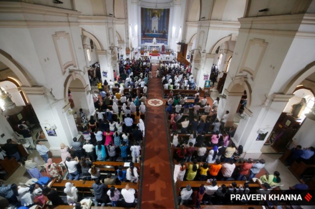 Devotees pray at the Sacred Heart Cathedral on Good Friday, in New Delhi.