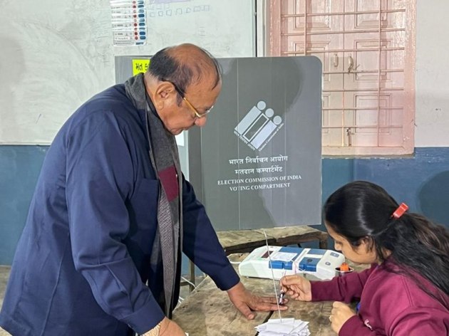 The polling will take place at 26409 polling booths across the state. Here, former Gujarat Chief Minister Shankersinh Vaghela is clicked as he casts his vote at a polling booth in Gujarat on Monday. (Express Photo)