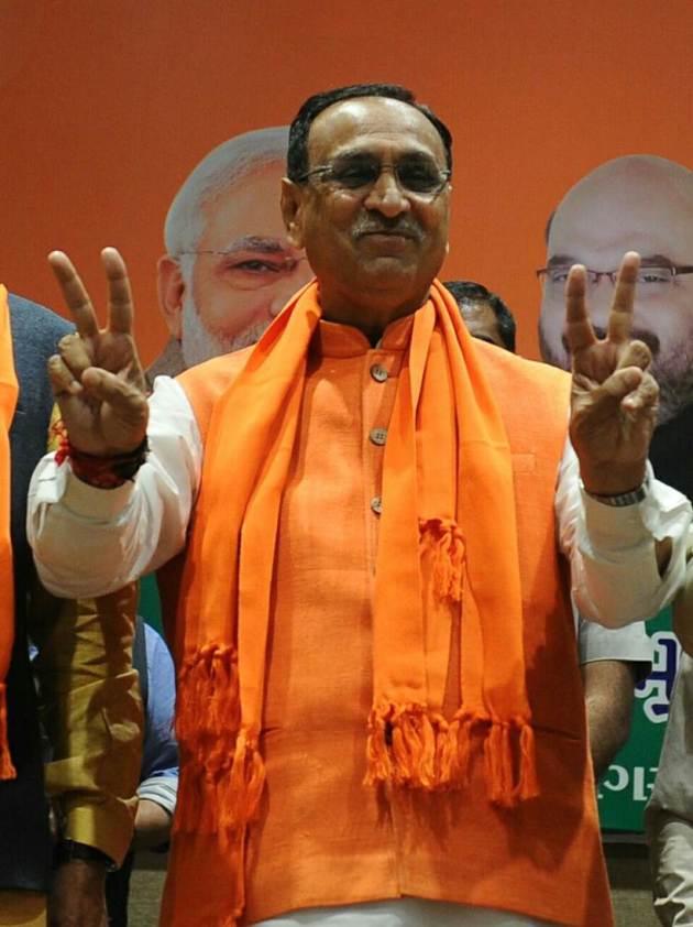 CM Vijay Rupani at State BJP office at Koba, Gandhinagar. (Express Photo Javed Raja)