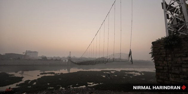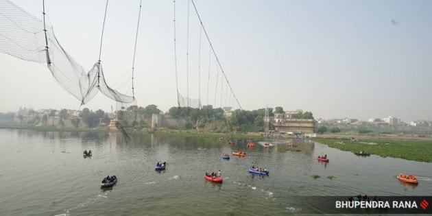 The Morbi town of Gujarat, usually abuzz with tourists, now bears a deserted look. On Sunday, a suspension bridge over the Machchhu river, popularly known as Jhulto Pool, collapsed, killing at least 134 people. (Express Photo by Nirmal Harindran)