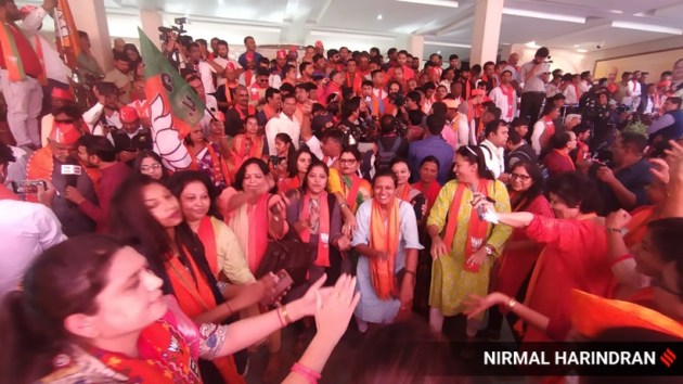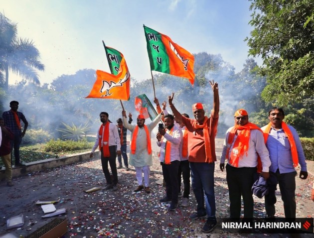 The BJP, with over 150 seats, is miles ahead of its rivals Congress and AAP. (Express Photo by Nirmal Harindran)