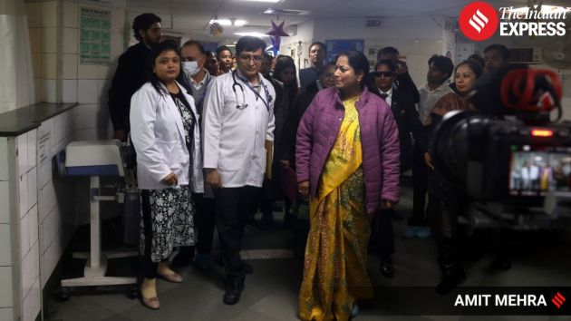 Delhi Chief Minister Rekha Gupta visited the Rajiv Gandhi Super Specialty Hospital in Dilshad Garden on Wednesday to inspect hospital facilities and review the quality of healthcare services (Source: Photo by Amit Mehra)