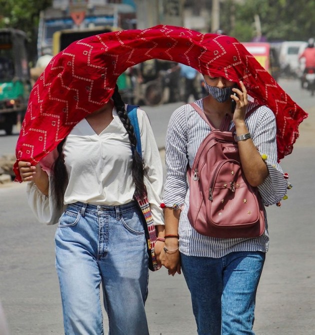 Pedestrians shield their faces from the heat with a scarf, in Gurugram, Thursday (PTI)