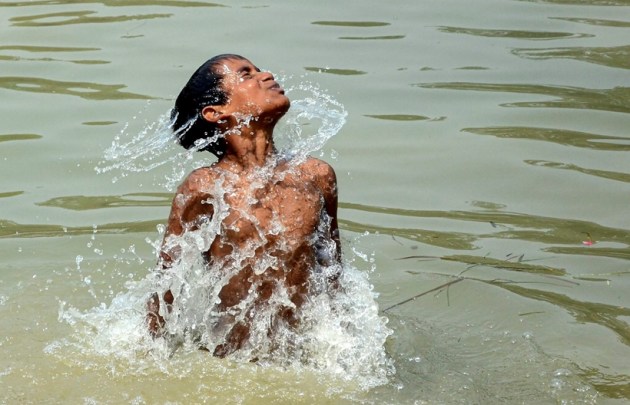 A boy takes a dip in a canal, on the outskirts of Amritsar, Thursday (PTI)