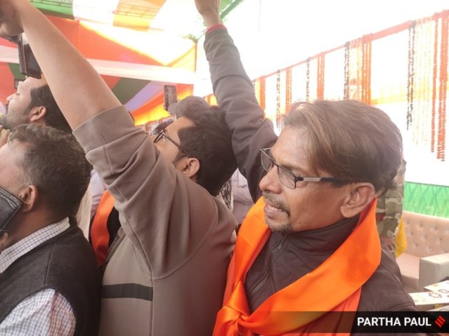 BJP workers chant 'Jai Shri Ram' at the Howrah station.