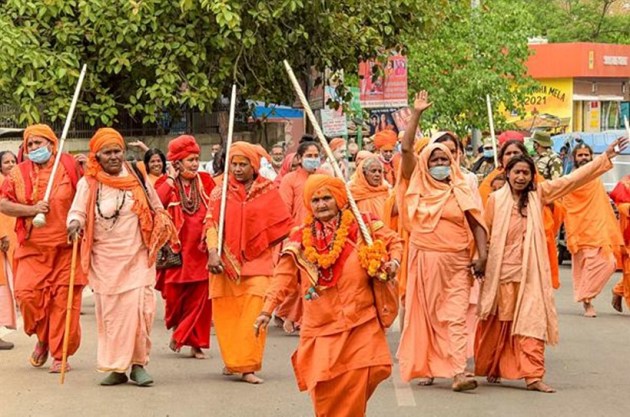 Hermits of 'Juna Akhara' during Kumbh Mela 2021, in Haridwar. (PTI)