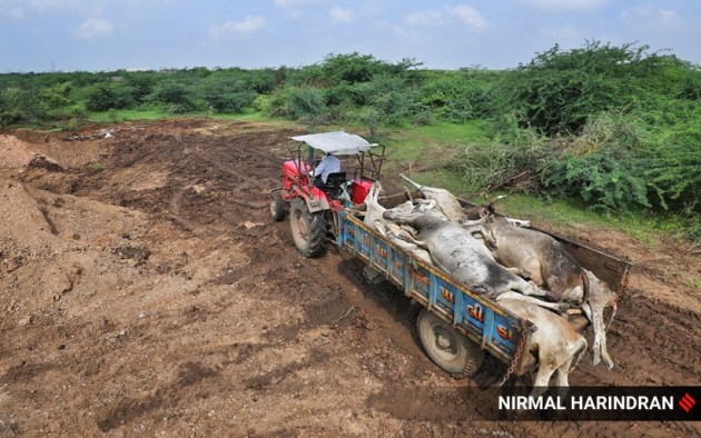 In Gujarat, the infection has spread in 23 districts. The state government has set up a task force to look into the issue. Earlier, it issued orders declaring 14 districts as “controlled districts” prohibiting transportation of cattle and conducting cattle fair. (Express Photo by Nirmal Harindran)