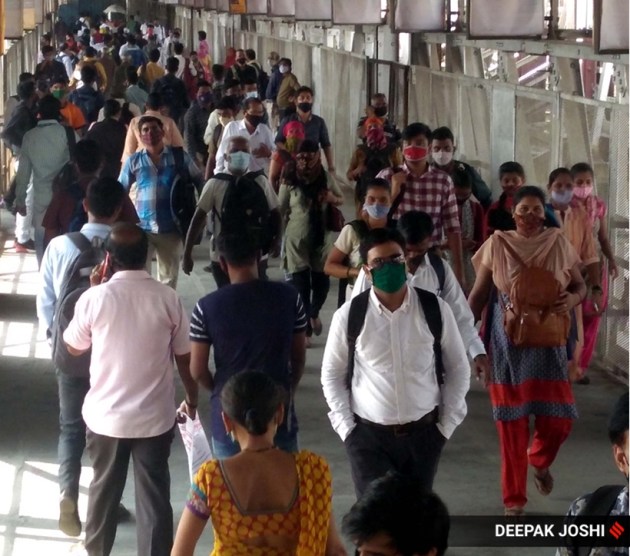 While shops and public places remained closed, a crowd was witnessed at local railway stations. In Pic: Crowd at the Thane railway station.