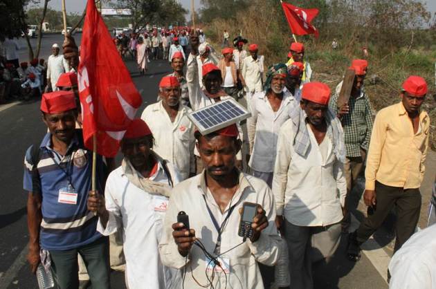 The " long march" which was called by Akhil Bharatiya Kisan Sabha(ABKS) affiliated to the CPI(M)demanded a complete farm loan waiver, transfer of forest land to tillers, implementation of the Swaminathan Commission’s recommendations, compensation of Rs 40,000 per acre to farmers hit by hailstorm and pink bollworm, and putting a stop to sharing the state’s water with Gujarat. Express photo by Prashant Nadkar
