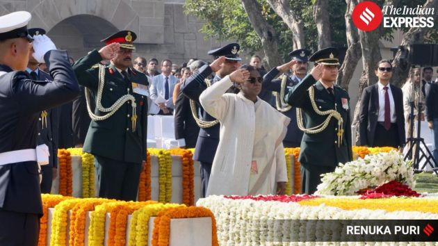 President Droupadi Murmu and Prime Minister Narendra Modi paid floral tributes to Mahatma Gandhi at Raj Ghat on his 78th death anniversary in New Delhi on Friday (Source: Photo by Renuka Puri)