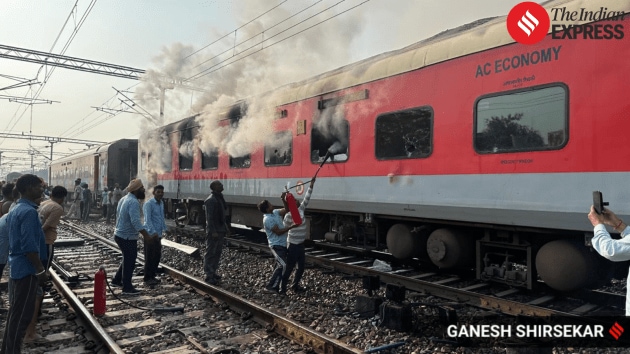 The incident occurred around 7:30 AM when passengers noticed smoke coming from one of the 3AC coaches (Source: Photo by Gurmeet Singh)