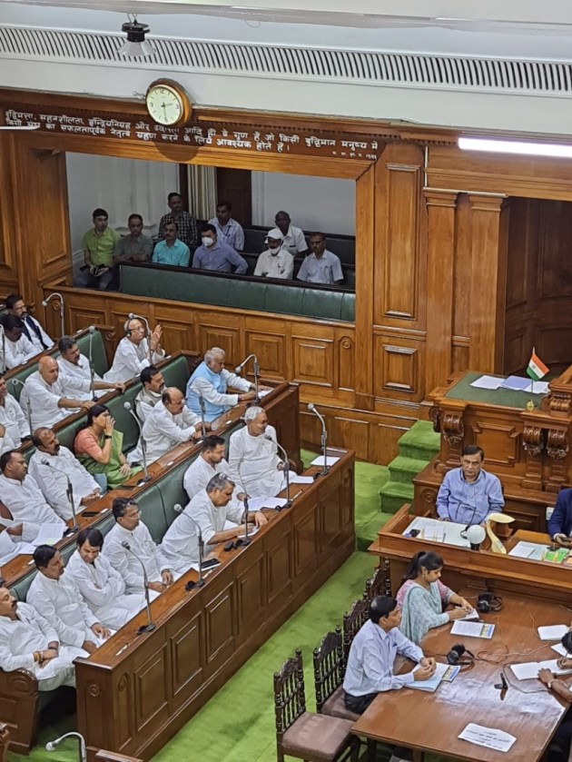 The RJD and JD(U) won by voice vote as the opposition BJP, which was stripped of power due to the recent political upheaval in the state, staged a walkout in the Assembly. (Express Photo)