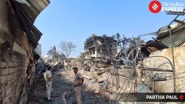 According to missing-person complaints, 25 people were inside the decorators’ unit and three others were in the momo factory when the fire broke out, with most of the missing being migrant workers from East and West Midnapore districts (Source: Photo by Partha Paul)