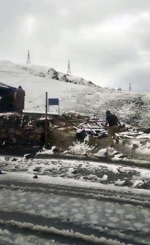 Snowfall in the higher reaches of Kashmir and rains in the plains brought an end to a prolonged dry spell in the region. (ANI Photo)
