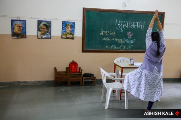 In the absence of an opportunity for physical teaching, teachers have been doing their best trying to engage students as much as possible, through acting out what they teach and other forms of art. (Express Photo by Ashish Kale)