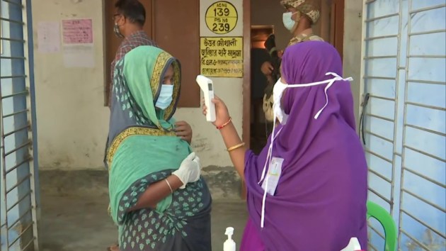 Voters wearing masks were seen queuing up outside polling booths as voting began at 7 am. In most constituencies, voters who did not have masks were provided with one. (ANI)
