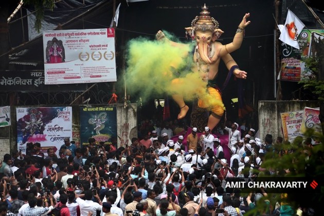 Huge gatherings take place during Ganesh Chaturthi in Pune, Mumbai and various parts of Maharashtra, where crowds carry the idols of lord Ganesh.(PTI)