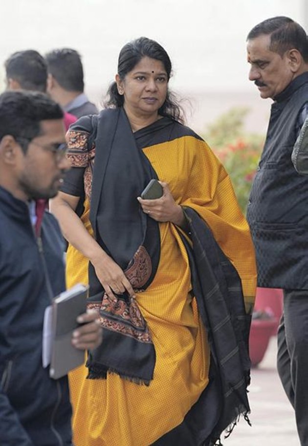 Leaders of several Opposition parties attended a meeting convened by Congress president Mallikarjun Kharge to evolve a joint strategy for the Winter Session of Parliament. Left parties, Dravida Munnetra Kazhagam (DMK), Rashtriya Janata Dal (RJD), Trinamool Congress (TMC), Aam Aadmi Party (AAP), Nationalist Congress Party (NCP), NC and the RSP were represented in the meeting convened before the session commenced. In pic: DMK's Kannimozhi at Parliament House. (PTI)