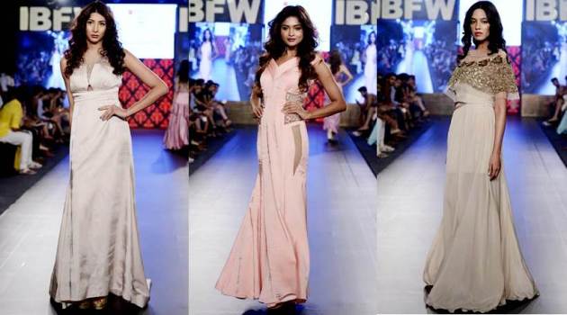 Models showcase gown designs by Ridhi Arora, which can suit all the pre-wedding functions to a T. If you walways wanted to wear a white gown (think white wedding), then this is one great way to incorporate that look. (Source: Virender Chawla)