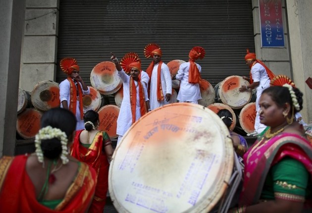 Maharashtrians dressed in traditional costumes attend celebrations in Mumbai. (Photo: Reuters)