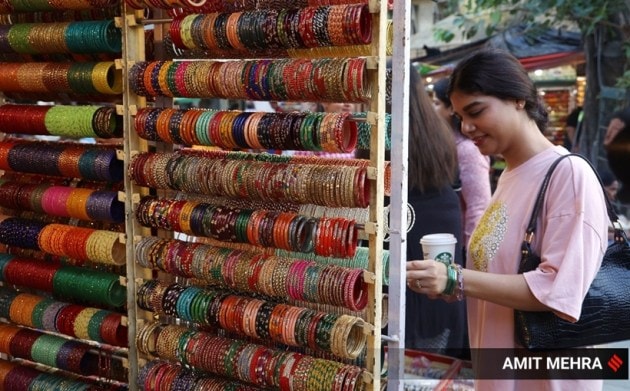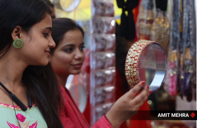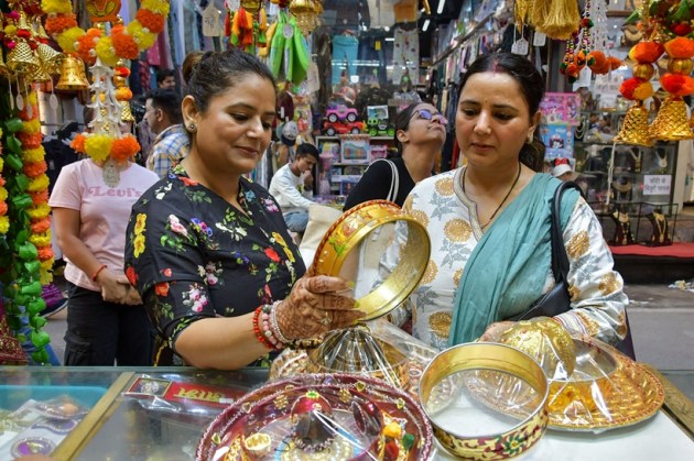 Women shopping for Karwa Chauth festival in Ludhiana. (Express photo by Gurmeet Singh)